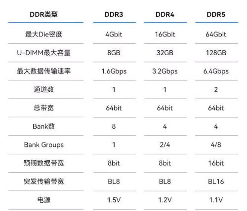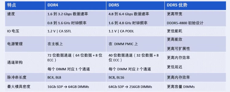 DDR5是最新的第5代DDR,在2021年推出。与DDR4相比,DDR5具有以下优势。